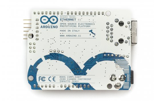 L'Arduino Ethernet è una scheda basata su Arduino Uno, che integra un controller ethernet WizNet W5100. Può essere programmata come una UNO tramite il connettore FTDI. L'Arduino USB-to-Serial o qualsiasi convertitore usb/seriale può essere utilizzato per programmare la scheda.