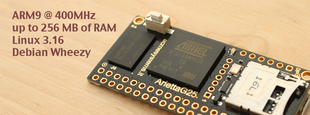 Basato sul processore ARM9 a 400 MHz, Arietta G25 e' un micro computer GNU/Linux embedded condensato in pochi centimetri quadrati. Dispone di 256 MB di RAM, GPIO con 40 pin di I/O configurabili, bus I2C, SPI, I2S e UART. Oltre agli I/O digitali classici sono presenti dei pin che possono essere configurati sia come I/O digitali generici, sia come ingressi/uscite analogiche ADC e PWM. Arietta G25 e' ad un livello tecnico che la rende un tassello importante in un percorso di formazione e di utilizzo professionale dei sistemi GNU/Linux embedded, che, in pratica, comporta la capacità di personalizzare ed ottimizzare il kernel di GNU/Linux in base alle esigenze dei nostri progetti. Kernel tuttofare come quello di Raspberry Pi, zeppi di driver e moduli plug and play permettono una gestione semplice per la maggior parte delle periferiche, ma appesantiscono la distribuzione, in termini sia di occupazione di memoria, sia di prestazioni. Nel nostro caso possiamo mantenere il kernel il piu' magro possibile, risparmiando memoria e cicli di CPU, godendo di prestazioni di tutto rispetto. Cio', anche a vantaggio di un limitato consumo di energia, il che rende possibile l'utilizzo del sistema a batteria. Sono disponibili informazioni, diversi tutorial e un'applicazione per configurare i diversi pin e generare in automatico il file .dtb (Device Tree Blob) con l'associazione delle funzioni desiderate ai pin fisici. Alcuni pin condividono informazioni diverse, per questo e' necessario configurare un file con le associazioni desiderate. In alcuni casi e' necessario anche modificare il kernel della distribuzione Linux. Per queste operazioni i progettisti hanno messo a disposizione sul loro sito uno strumento grafico provvisto di interfaccia web che permette di configurare i pin di I/O della scheda nel modo desiderato e poi ottenere e scaricare il file di configurazione con estensione .dtb da inserire nella partizione di boot della scheda. Nel sito sono presenti istruzioni su come ricompilare il kernel per includervi driver specifici, ma anche immagini precompilate da utilizzare direttamente.Il file .dtb e' letto dal kernel in fase di boot per leggere ed applicare la configurazione iniziale del sistema, associando i pin del SoC ai pin fisici del GPIO e caricando i relativi driver. In Raspberry Pi la configurazione e' pressoche' predefinita e dove e' possibile si interviene con lo strumento di configurazione in formato testo nella partizione di boot e nella cartella /etc.